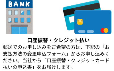 口座振替・クレジットカード払い・コンビニ払いへの変更手続きについてご案内いたします。
